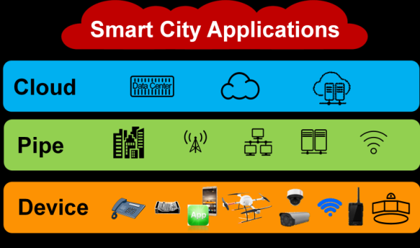 如今,智慧城市的数字化转型将遵循“设备–管道–云–应用”的概念。设备收集数据;管道将数据通过运输基础设施传送到云,在此存储、分类和互相关,并可供应用处理以进行可视化以做出明智的决策。这是一个简化的模型,但可以应用于智能城市中的任何垂直行业,关键是基于云的协作数字平台,该平台可以基于分类进行自适应处理和决策,访问“数据湖”中的所有数据。